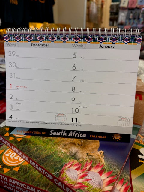 Desk Diary Calendar, a weekly view desk diary calendar for the year 2026 featuring memorable images portraying the splendour and beauty of sunny South Africa.